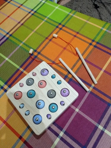 Toy Super! The child is very interesting, and also adults. Colors are beautiful, there is no smell, completely wooden. Magnets are strong, keep very well. Thank you seller!