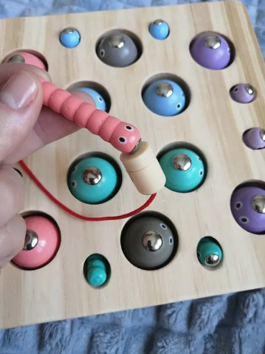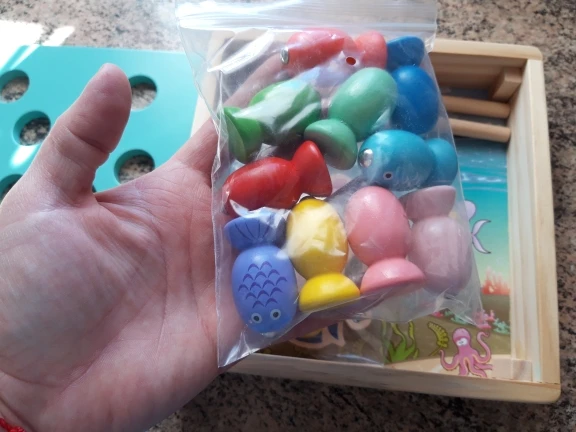 Очень классная игрушка! С ребёнком 1 г играем с удовольствием. Рыбки и червячки насыщенных цветов. Вообще все соответствует описанию. Сделано качественно и доставка очень быстрая.