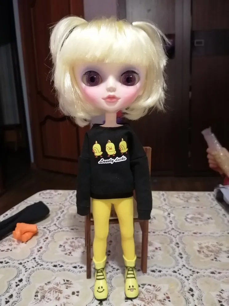 The body is not upholstered, but very similar-even falls apart into 2 parts, like the original… Brushes made of plastic and change them is not very convenient. The head only turns, because it’s just planted on the neck. In principle, acceptable quality and I’m happy, that I have a doll like Asian bloggers on Instagram, but within 25 euros;) with the head of the liquor, the doll looks harmonious.