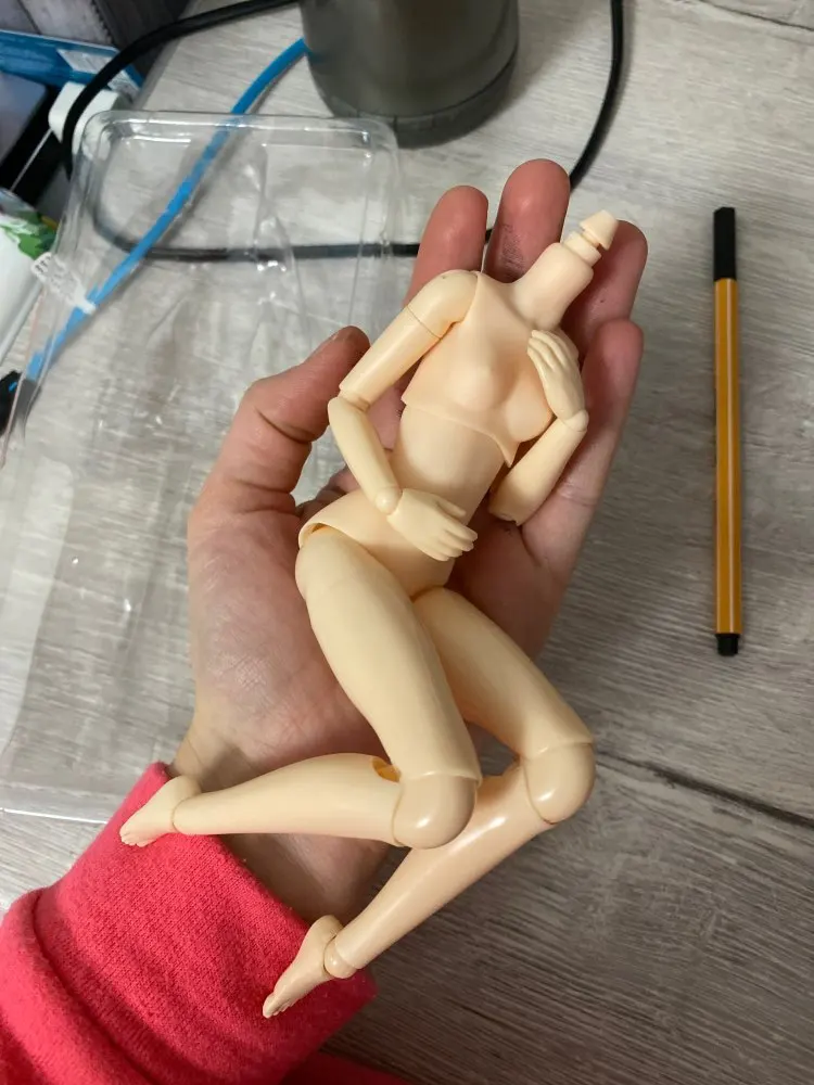 Nice body! Nothing creaks, the shine is minimal, all the hinges are strong, perfectly hold the pose. In the kit there are 3 pairs of brushes. No boiling anchor, but nods the neck itself like an action. On the sides of the neck a little bulges this boiling mechanism, does not throw into the eyes. Delivery is fast, tracked all the way. Excellent seller, I recommend!