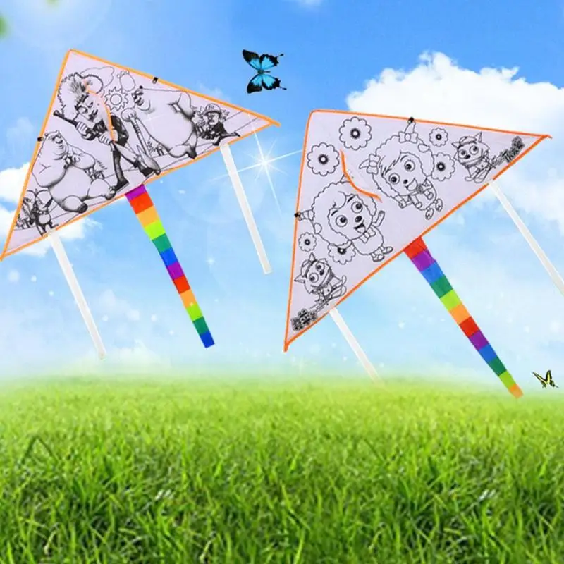 Outdoor Flying Kites Toy Diy Graffiti Color Filled Kite Blank Triangle Kite With Handle And Line Outdoor Sports Educational Toy