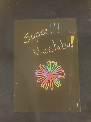 Nors atvyko vienoj vietoj įtruke, bet man tas netūkdo. Šeip piešia gerai, tik kiek reikia įdirbio. Vaikam manau patiks.