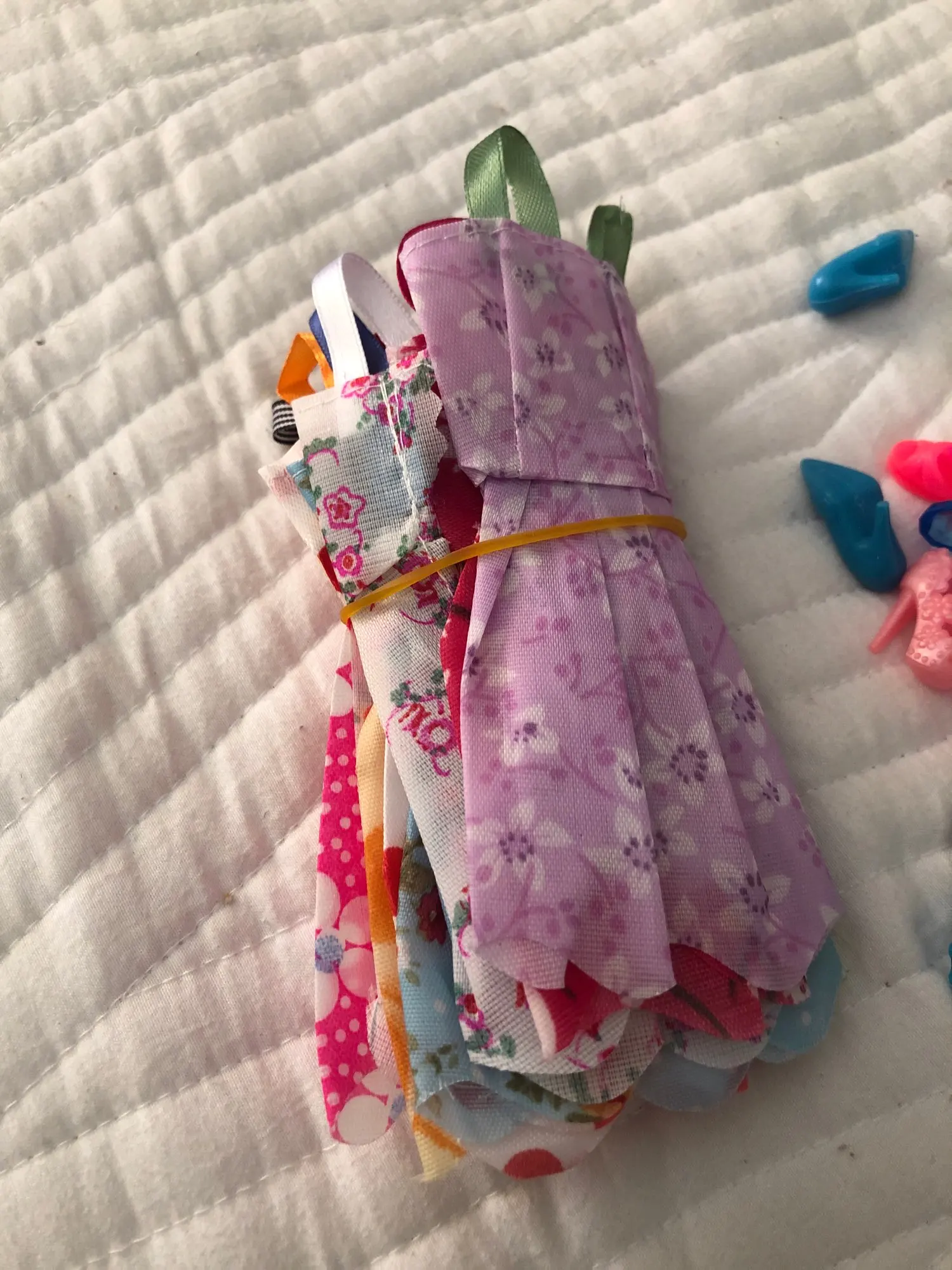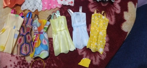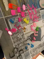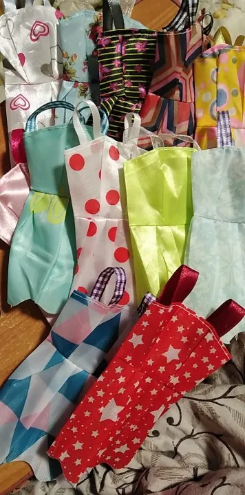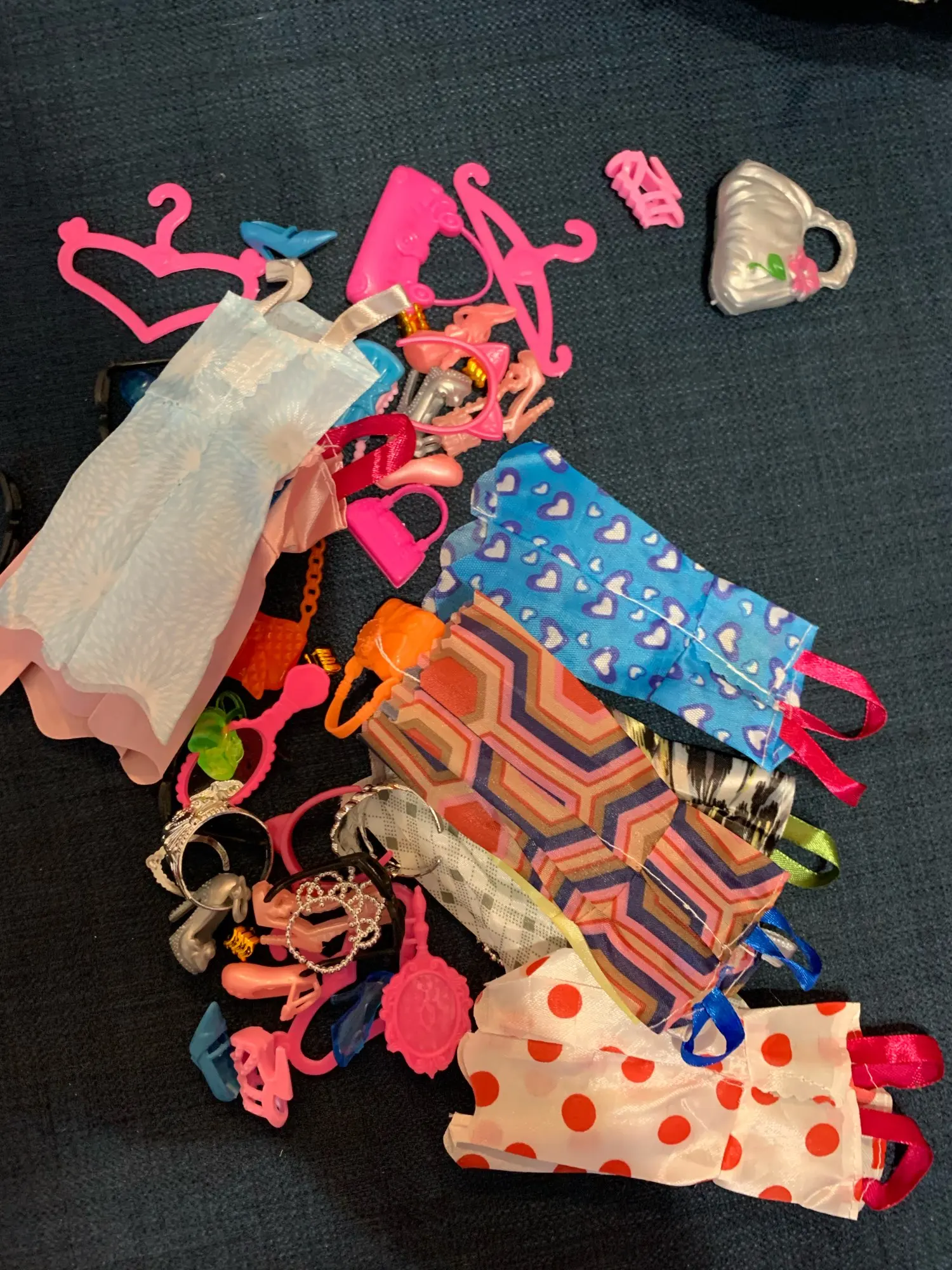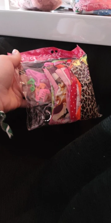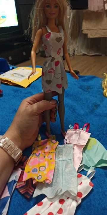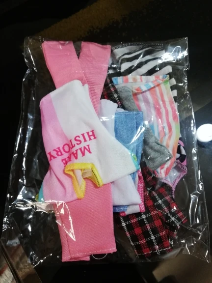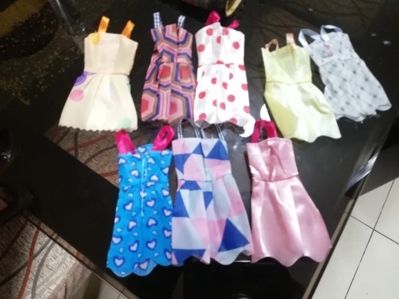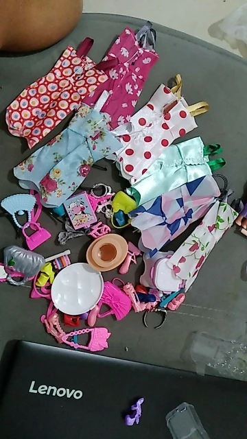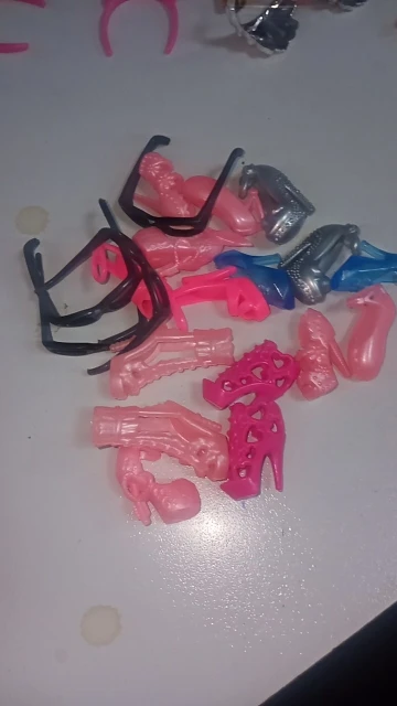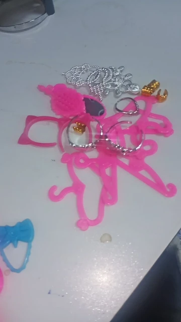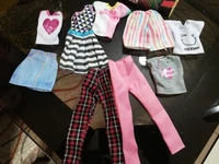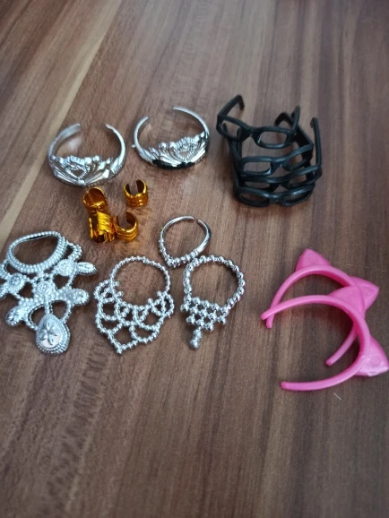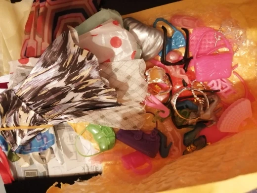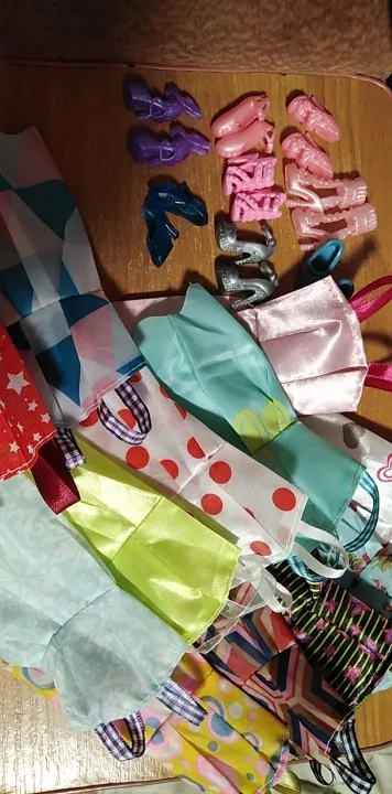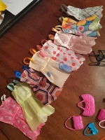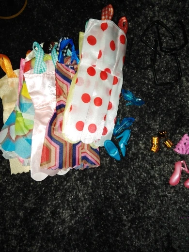 #Random 45 pcs: 8x Dresses + 8x Shoes + 4x Glasses + 2x Head wears + 4x Necklaces + 2x Crown + 5x Hangers +8x Bags +2x Gold bracelet + 1x Mirror + 1x Comb