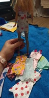 The set included 47 items: 8 dresses, 4 bracelets, 4 necklaces, 8 bags, 5 shoulders, 2 tiaras, glasses 4 pcs., 2 rims with ears, mirror, comb, 8 pairs of shoes. She took as a gift for her daughter. In principle, the set is not bad.