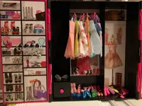 The quality of the dresses is not very good. The shoes are very good just like the other accessories. For the price is not bad at all. (everything but the closet comes)