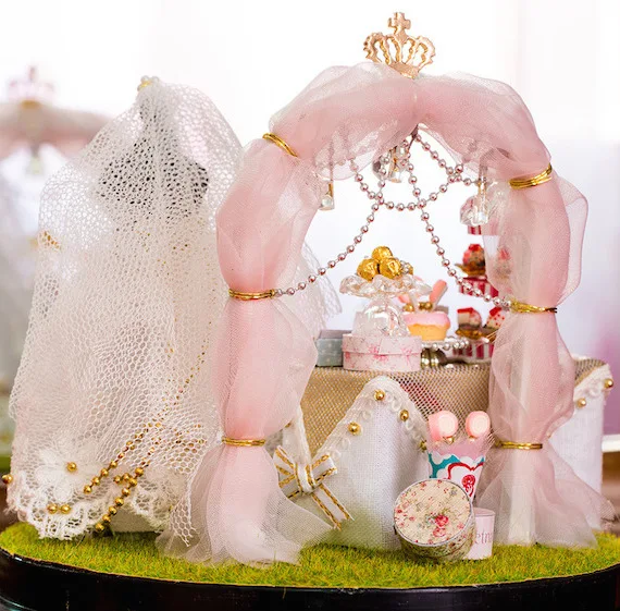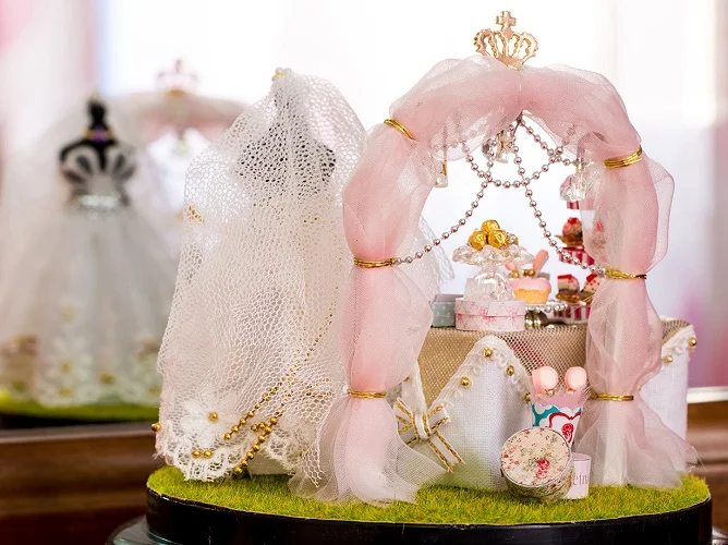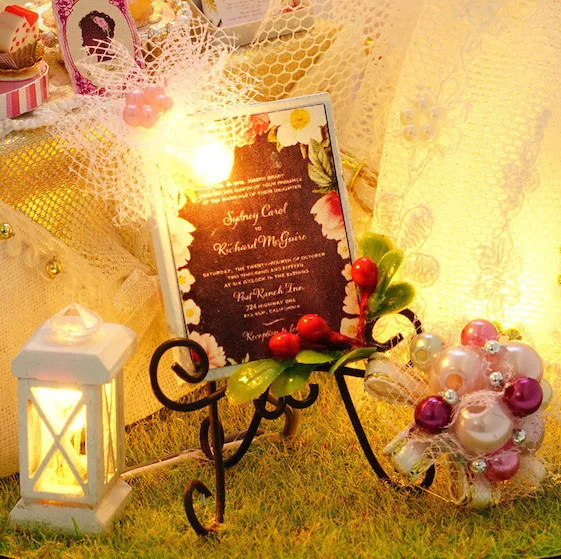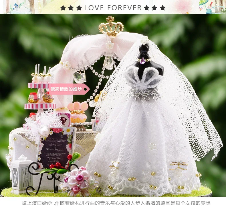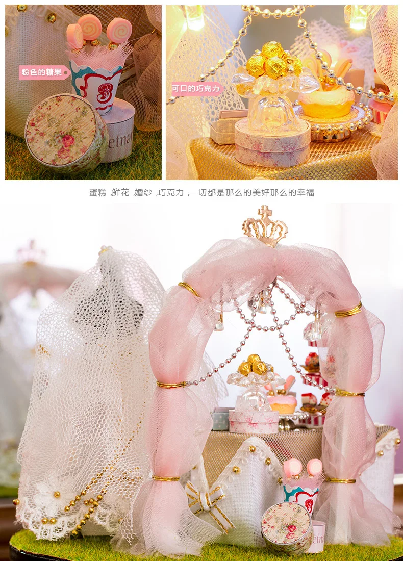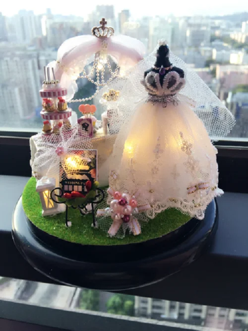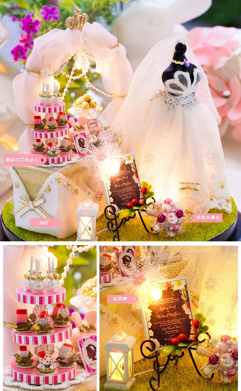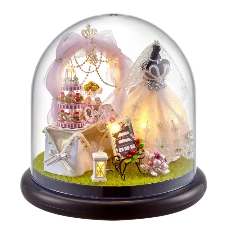 Spring Flowers DIY Handmade Mini Doll House White Wedding Dress Wooden Miniature Home Assembling Decoration Glass Ball Dollhouse