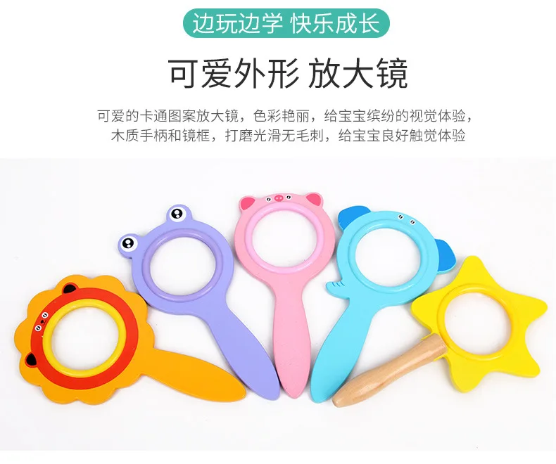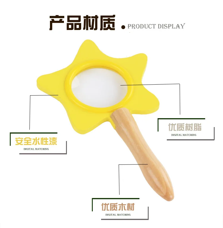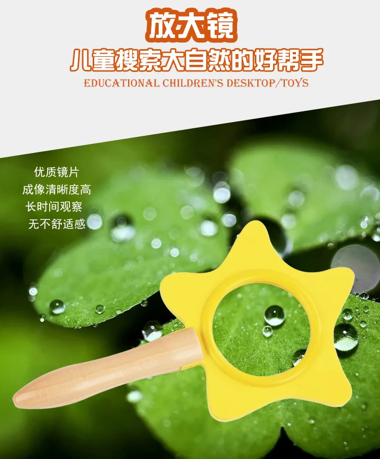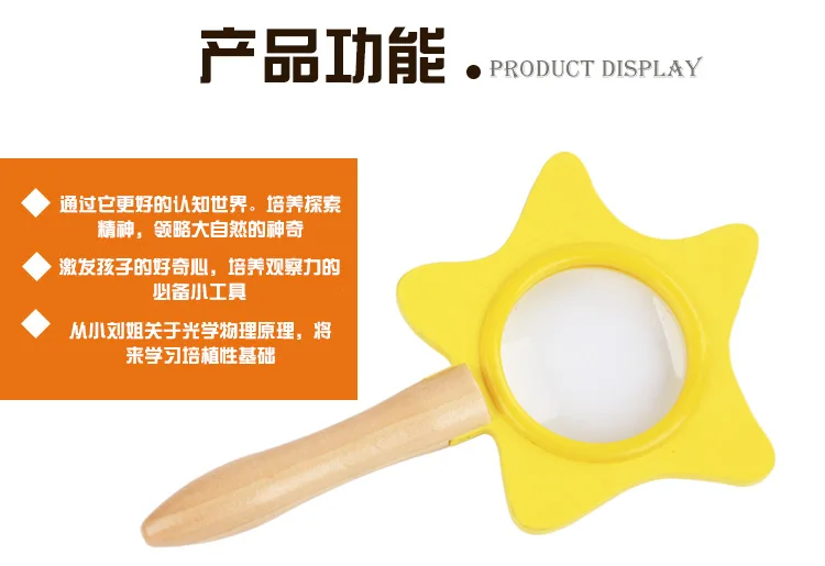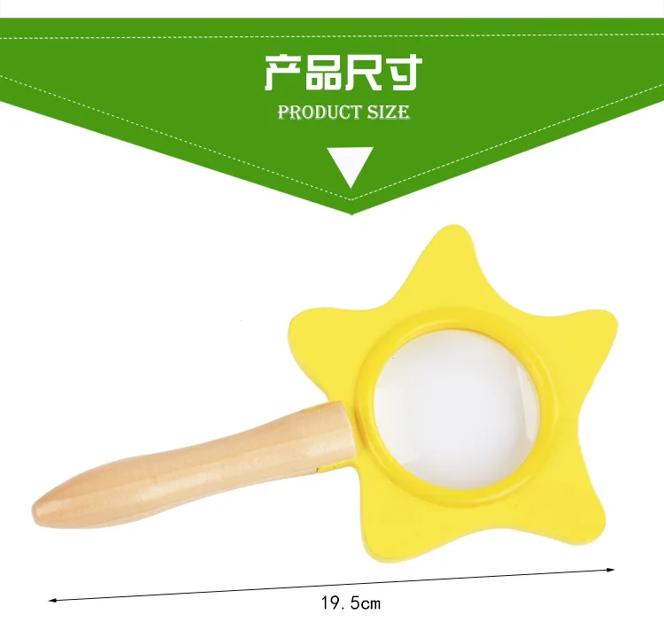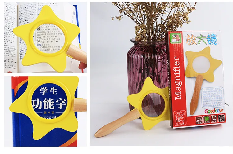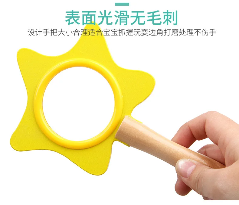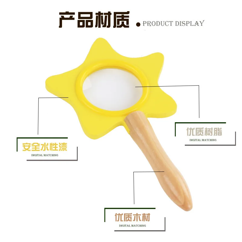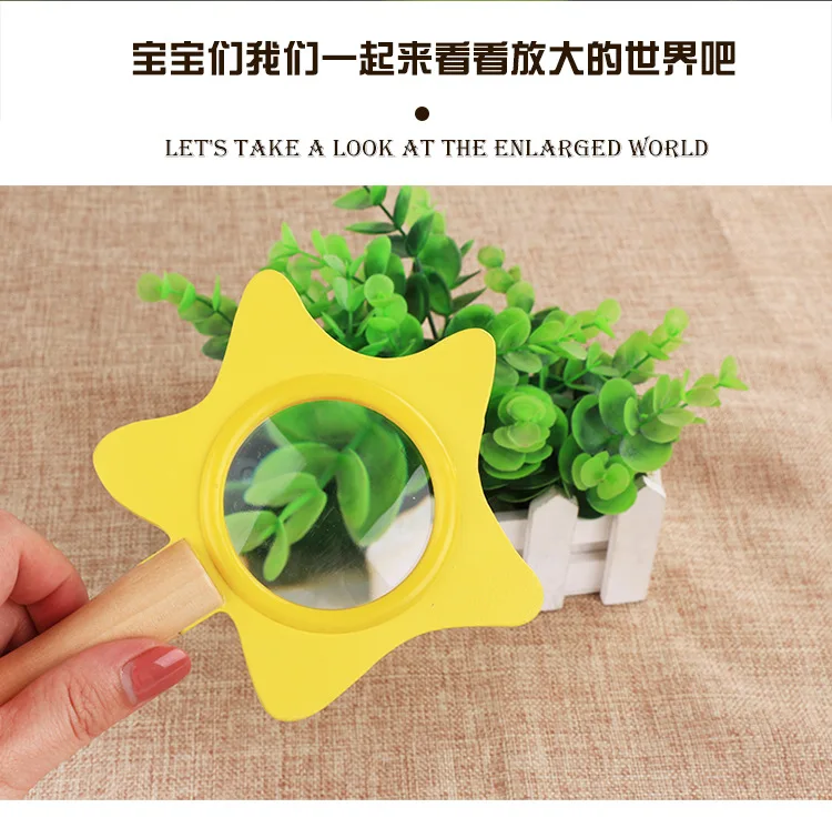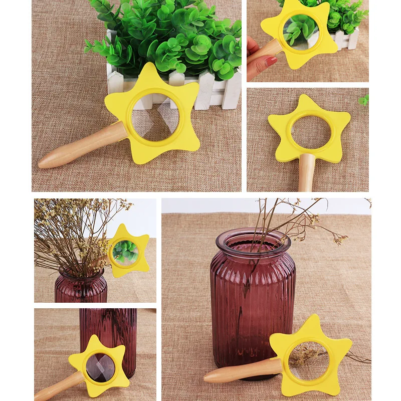 Wooden Magnifier Toy Yellow Star Fun Magnifying Glass Science Education Early Education Observation 3-4-5 Year Old Utensil Toy