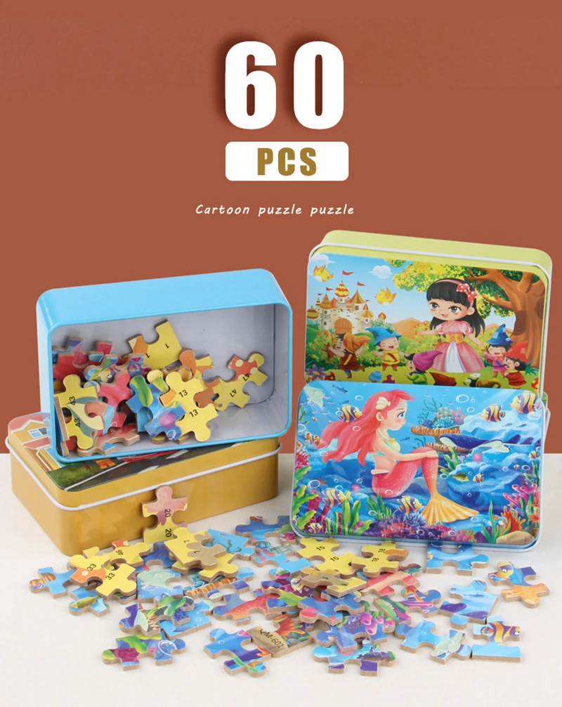 Hot New 60 Pieces Wooden Puzzle Toys for Children Cartoon Animal Vehicle Wood Jigsaw Baby Educational Toy Kids Christmas Gift